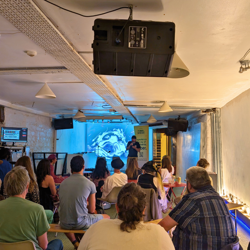 Central Bristol Sober Open Mic Past Events What we've been up to Voices in Action: Challenging Health Inequity Together Nov 5, 2025 Celebration of Life Nov 29, 2025 Creative Communities Winter Show #1! Dec 1, 2025 Creative Communities Winter Show #2! Dec 4, 2025 Dry Jan Rave with Jumpin’ Jack Frost Jan 24, 2026 Bristol Dance Project – World Music Night Feb 28, 2026 Sober Queers Apr 14, 2026 Sober Spring Rave Apr 18, 2026